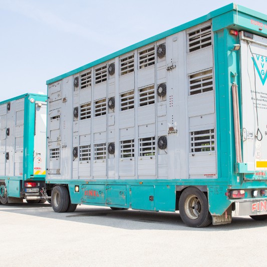Wir setzen sechs moderne Gliederfahrzeuge und eine Sattelzugmaschine für den Transport von Ferkeln, Schweinen und Rindvieh ein. Jedes dieser Fahrzeuge ist überdurchschnittlich ausgestattet und im Besitz einer Typ-1-Genehmigung nach Artikel 10 Abs. 1 der Verordnung (EG) Nr. 1/2005. Wir fahren mit unseren Mastschweinen fast nur regionale Schlachthöfe an, sodass selten lange Transportzeiten erreicht werden.